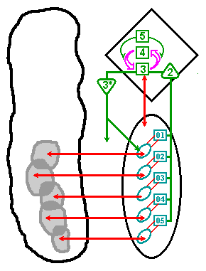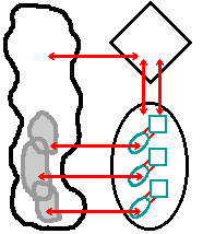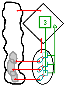It's shown interacting with three Operational elements, although not as clearly as in the first diagram. This arrangement has much more in common with the human System Three - the base brain - which sits on top of the spinal column and optimises the working of the muscles and organs. |