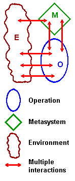 environment. The Operation carries out the system's basic activities. It will consist of several Operational units. It is the muscles, the production units, the parts that generate wealth. The Metasystem is there to provide a service to the Operational units. It is there to hold the organisation together. It is the brain, the regulator, the management. The details of the what goes on within each of these three shapes will be filled in as the diagnosis proceeds. The job at this point is to draw the VSM in outline as an overview of your system-in-focus interacting with its environment.